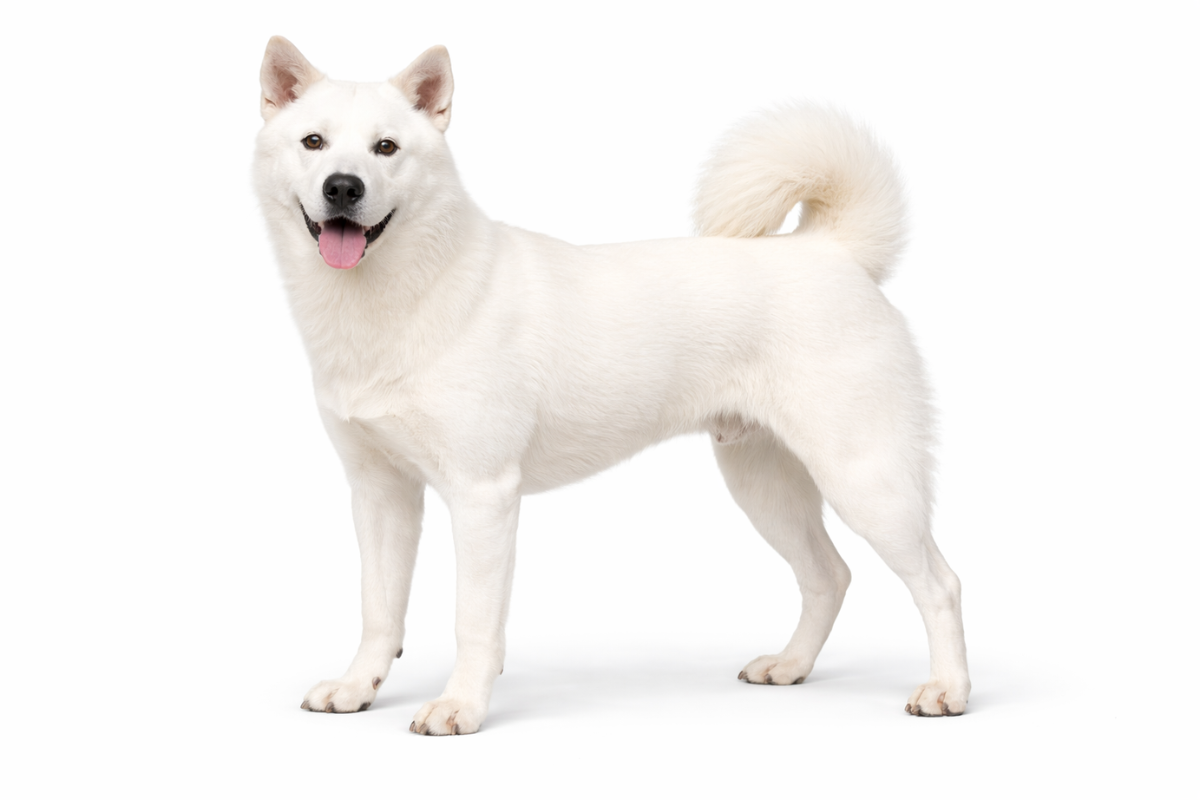 - 立ち耳と巻き尾が特徴的で、日本犬らしい凛々しい外見を持つ