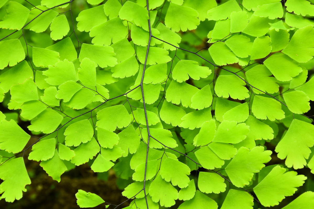 アジアンタムはシダ植物の一種で、細かく切れ込んだ小さな葉が特徴的です。
